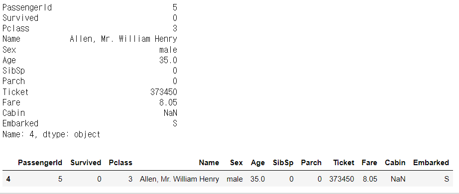 display(ti_df[4:5]) # 똑같이 4행출력 슬라이싱