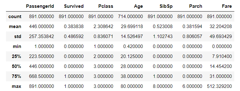 - 전체 data 개수/ 평균/ 4분위수 등을 제공함