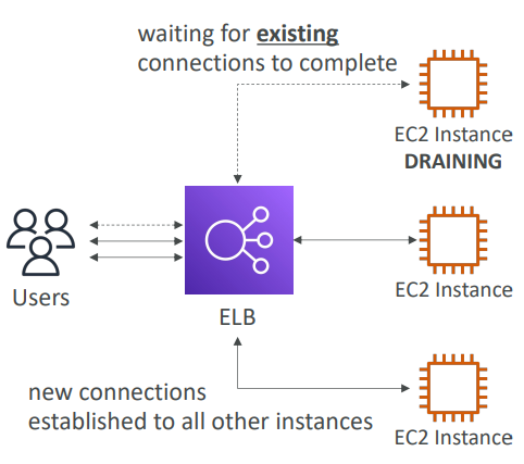 연결 드레이닝은 인스턴스를 비활성화하거나 교체할 때 이전에 해당 인스턴스에 연결된 사용자에게 충분한 시간을 제공하는 방식입니다. 이를 통해 기존 연결 및 요청을 완료할 수 있도록 도와줍니다.